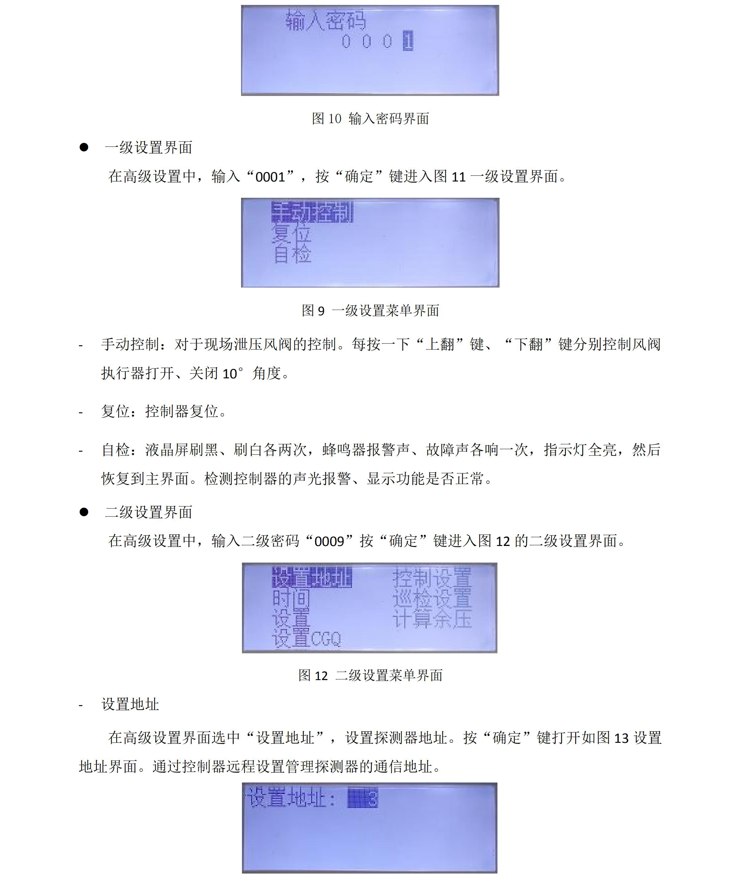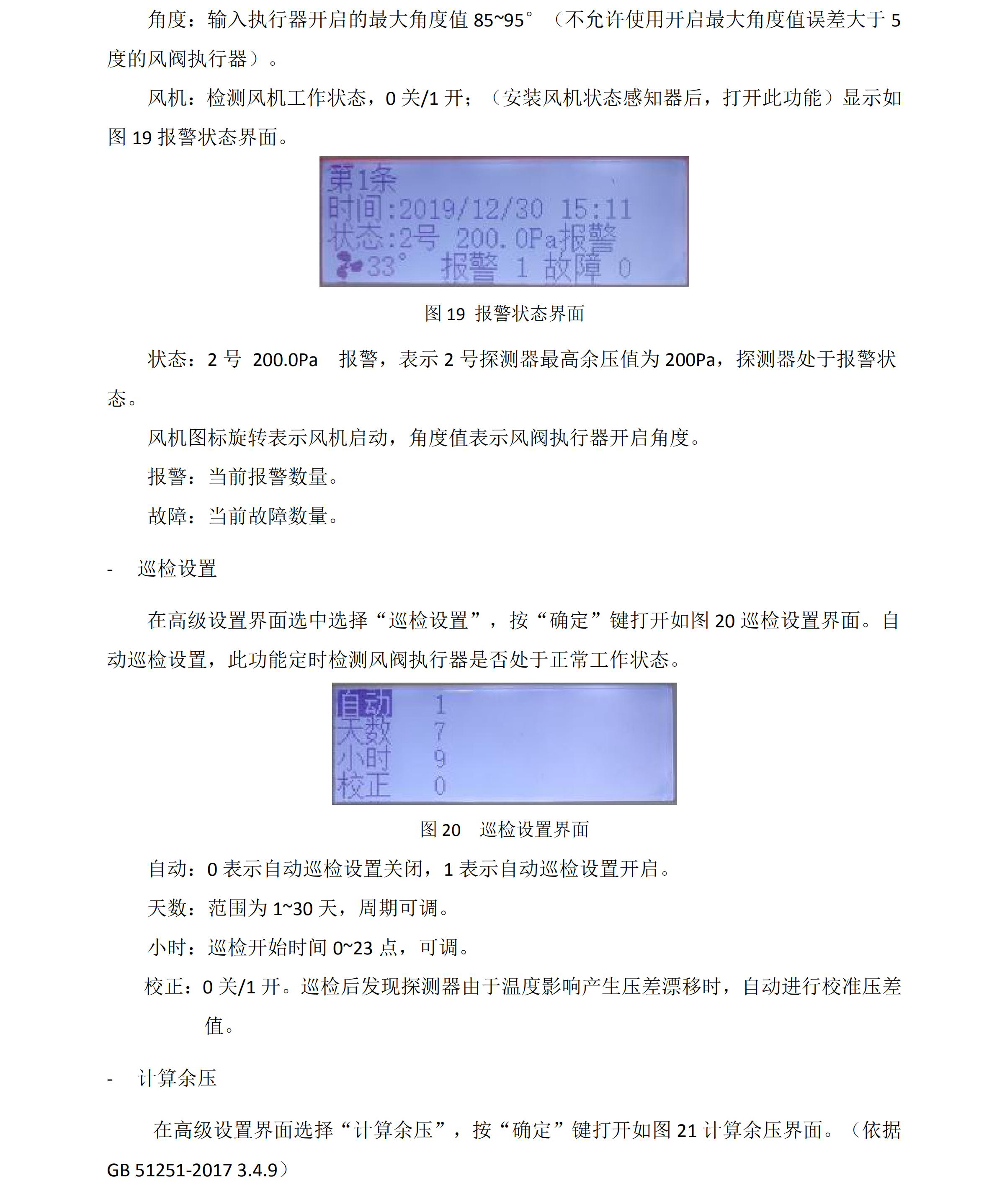 - *號**Pa 報警:*號探測器余壓報警,報警壓差**Pa。