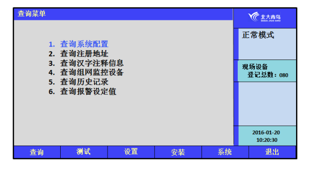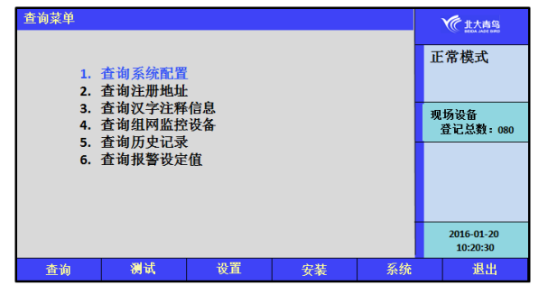 選擇1:查詢系統(tǒng)配置,見7.1.1;