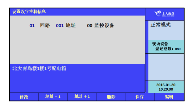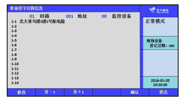本監(jiān)控設備可以采取兩種方式實現(xiàn)漢字注釋:一種方法是借助于我公司提供的專用調(diào)試軟件實現(xiàn);另一種方法是利用監(jiān)控設備的鍵盤和液晶屏實現(xiàn),進入安裝菜單,鍵入【6】“設置漢字注釋信息”來實現(xiàn)文字注釋。