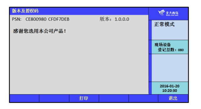 進入測試菜單后,鍵入數(shù)字鍵【4】進入“用戶密碼及授權管理”,可以查看每個主機唯一的PSN碼及版本。