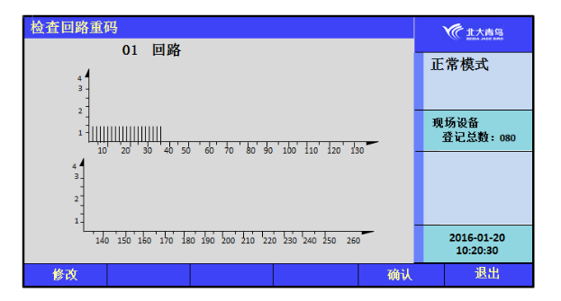 進入測試菜單后,鍵入數(shù)字鍵【5】進入“檢查回路重碼”,數(shù)字1~3代表回路中重碼的個數(shù),數(shù)字4則表示此地址無PSN碼。