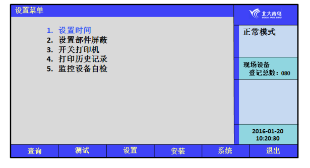 在設置操作菜單中可以進行如下操作:設置時間、設置部件屏蔽、開關打印機、打印歷史記錄和控制器自檢。
