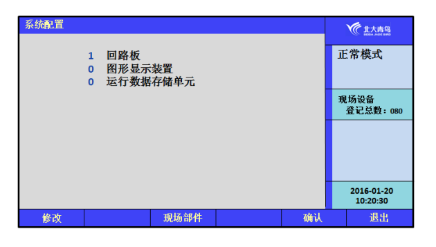 系統(tǒng)在正常運行前,需要進行配置。本監(jiān)控設備有1個回路板,0個運行數(shù)據(jù)存儲單元,根據(jù)實際情況配置是否有圖形顯示裝置,如果沒有設置為0,如果有設置為1。如果沒有進行系統(tǒng)配置,則相應設備無法正常工作。