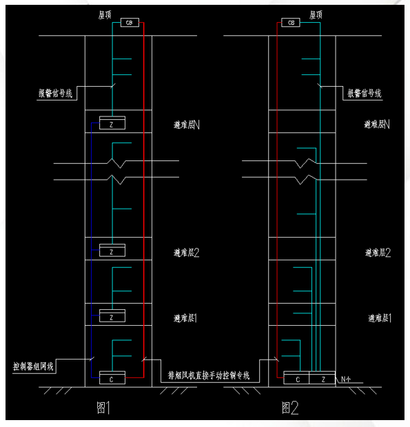 每臺控制器的火災(zāi)探測器、手動報警按鈕和模塊等設(shè)備不應(yīng)跨域避難層。 ”